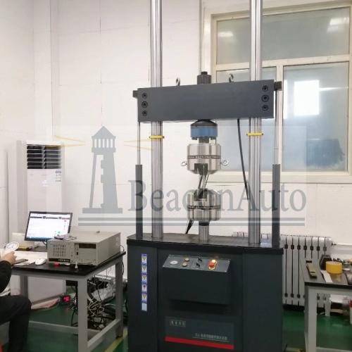 動(dòng)靜態(tài)高溫疲勞試驗(yàn)機(jī)主要技術(shù)指標(biāo)。 1、試驗(yàn)力單元: l Z大動(dòng)靜態(tài)試驗(yàn)力:±50KN; l 有效測(cè)量范圍:全程不分檔1%—100.%FS; l 靜態(tài)試驗(yàn)力示值精度:小于±0.5%;動(dòng)態(tài)試驗(yàn)力示值精度:小于±1.0%; l 試驗(yàn)力平均負(fù)荷波動(dòng)度:小于±1%; l 試驗(yàn)力動(dòng)態(tài)負(fù)荷波動(dòng)度:小于±1%; 2、位移單元: l 系統(tǒng)Z大位移:不小于±75mm(總行程不小于150mm); l 動(dòng)靜態(tài)示值精度:±0.5%FS; 3、作動(dòng)器指標(biāo): l 作動(dòng)器有效行程:不小于±150mm(總行程不小于200mm); l Z高工作壓力:21MPa; l Z大試驗(yàn)力±10KN;±20KN;±50KN;±100KN; l 前法蘭連接,安裝在上橫梁上方 5、試驗(yàn)頻率及振幅:0.1~30Hz;(幅頻特性不同、可選擇匹配不同流量液壓站) 6、主要試驗(yàn)波形:正弦波、方波、三角波、斜波、半正弦、半三角、各類(lèi)組合波形。 7、試驗(yàn)工裝; 輔具根據(jù)試件尺寸和試驗(yàn)方法定制工裝; 帶預(yù)應(yīng)力調(diào)整環(huán)以消除間隙; 8、壓縮附具: l 壓盤(pán)直徑φ150mm l 與底座和傳感器接頭配套設(shè)計(jì) 9、液壓油源參數(shù): l 壓力:21Mpa; l 流量:90L/min、120L/min、170/min l 功率:380V 22kW l 油箱凈容積260L; 幅頻特性 頻率 | 5HZ | 10HZ | 20HZ | 30HZ | 振幅 | ±5 | ±3 | ±2 | ±1 |