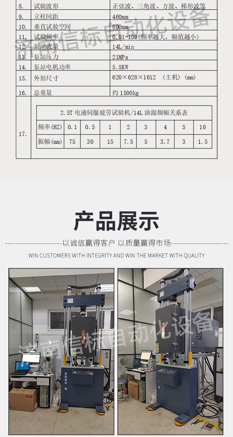 4.1 主機(jī) 主機(jī)為雙立柱加橫梁底座(立柱表面電鍍硬鉻)框架式結(jié)構(gòu),伺服直線作動(dòng)器下置(或者上置)結(jié)構(gòu)。主機(jī)作用是提供試樣連接接口,接受程序指令完成試樣的加載。其突出特點(diǎn)如下: 4.1.1主機(jī)為雙立柱框架式結(jié)構(gòu),橫梁采用液壓油缸控制升降、液壓缸控制夾緊式結(jié)構(gòu),使試驗(yàn)調(diào)整、操控方便。特殊的液壓油路設(shè)計(jì)既可以保證試驗(yàn)的穩(wěn)固可靠,可以在非試驗(yàn)狀態(tài)時(shí)橫梁保持鎖止不動(dòng)。 4.1.2橫梁具有很高的剛度和強(qiáng)度。同時(shí)造型具有立體感,美觀大方。 4.1.3橫梁升降、鎖緊油缸的密封元件采用進(jìn)口產(chǎn)品,品質(zhì)可靠,結(jié)構(gòu)獨(dú)特。 4.1.4立柱外表面采用電鍍硬鉻處理,進(jìn)一步提高外形的美觀程度,同時(shí)提高防腐蝕能力。 4.1.5橫梁操控(升降、夾緊)驅(qū)動(dòng)模塊采用高品質(zhì)液壓元件集成,控制臺(tái)設(shè)置符合人機(jī)工程學(xué)原理設(shè)計(jì)設(shè)計(jì)的操作臺(tái),便于試驗(yàn)者操作。 4.1.6伺服直線作動(dòng)器與工作臺(tái)剛性連接,內(nèi)置非接觸式高頻響LVDT位移傳感器,外置國(guó)產(chǎn)航空品質(zhì)伺服閥,7Mpa下流量為58L/min。負(fù)荷傳感器采用Vishay世銓試驗(yàn)機(jī)專用傳感器。 4.1.7設(shè)計(jì)由精度不大于5u國(guó)產(chǎn)溫州黎明精密濾油器以及具有消脈、蓄能功能的進(jìn)回油路蓄能器組成的中繼濾油穩(wěn)壓模塊。 4.1.8單元化、標(biāo)準(zhǔn)化、模塊化設(shè)計(jì)的伺服直線作動(dòng)器具有低阻尼、高響應(yīng)、高壽命、大間隙設(shè)計(jì)的特點(diǎn),設(shè)計(jì)理念與MTS公司等同。