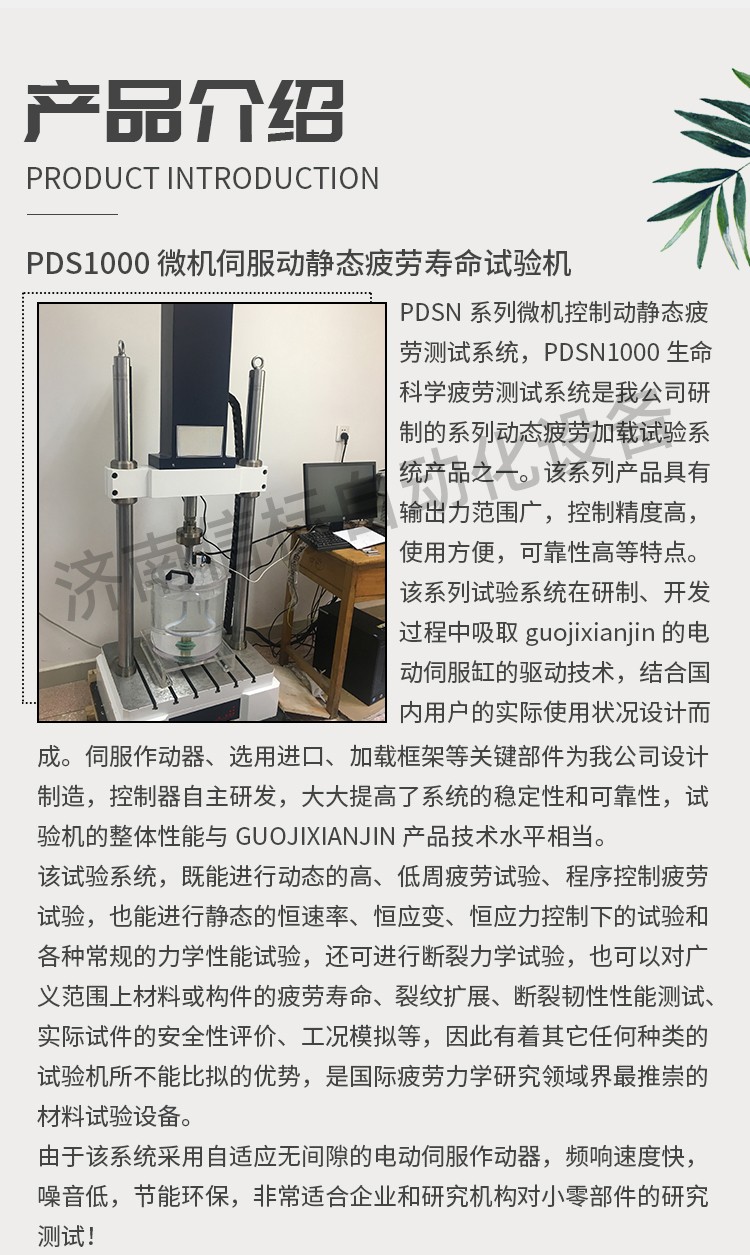 該試驗系統(tǒng),既能進行動態(tài)的高、低周疲勞試驗、程序控制疲勞試驗,也能進行靜態(tài)的恒速率、恒應(yīng)變、恒應(yīng)力控制下的試驗和各種常規(guī)的力學(xué)性能試驗,還可進行斷裂力學(xué)試驗,也可以對廣義范圍上材料或構(gòu)件的疲勞壽命、裂紋擴展、斷裂韌性性能測試、實際試件的安全性評價、工況模擬等,因此有著其它任何種類的試驗機所不能比擬的優(yōu)勢,是國際疲勞力學(xué)研究領(lǐng)域界最推崇的材料試驗設(shè)備。 由于該系統(tǒng)采用自適應(yīng)無間隙的電動伺服作動器,頻響速度快,噪音低,節(jié)能環(huán)保,非常適合企業(yè)和研究機構(gòu)對小零部件的研究測試! 2.優(yōu)勢特點: ?無需油源的直線電機技術(shù),保證潔凈的測試環(huán)境 ? 軸向通道采用Can總線式控制方式 ? 高速直線作動器 ? 獨特的驅(qū)動器軸承系統(tǒng),確保由于樣品和夾具的偏移或是有側(cè)向力情況下,加載鏈仍處于對中狀態(tài) ? 適用于各種材料和元器件的動靜態(tài)測試 ? 高動態(tài)性能,頻率zuida可達50 Hz ? ±3000N zuida動態(tài)軸向載荷 ? 光學(xué)編碼器用于精確的數(shù)字位移控制,及對試樣的變形控制。 ? 單相電源驅(qū)動,無需額外液壓油源、冷卻水、氣動空氣 ? 基于業(yè)內(nèi)先進控制方式的數(shù)字控制器 ? 高剛度、精確對準的雙立柱加載框架與位于橫梁上的驅(qū)動器 ? Dcell 先進載荷傳感器技術(shù),實現(xiàn)更快測試,減少慣性差 ? 靈活多樣的T型臺底座,適用于裝配各種規(guī)則/不規(guī)則的夾具和樣品