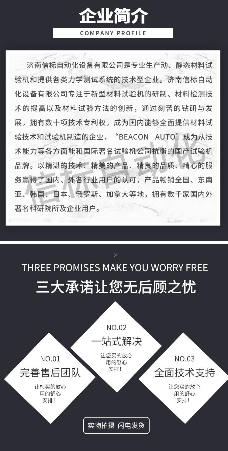 濟(jì)南信標(biāo)自動(dòng)化設(shè)備有限公司主要生產(chǎn):動(dòng)靜態(tài)萬(wàn)能疲勞試驗(yàn)機(jī),接骨板彎曲試驗(yàn)機(jī),縫合線拉伸疲勞試驗(yàn)機(jī),髖膝關(guān)節(jié)磨損試驗(yàn)機(jī),電子萬(wàn)能試驗(yàn)機(jī)、液壓萬(wàn)能試驗(yàn)機(jī)、巖石三軸、四軸,電液拉力試驗(yàn)機(jī),材料試驗(yàn)機(jī),高低溫蠕變,高低頻疲勞,拉伸、扭轉(zhuǎn)、杯突等二十多個(gè)系列兩千多個(gè)的品種。