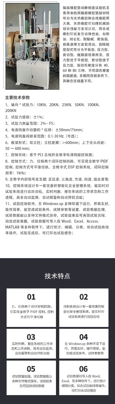 6,框架形式:雙立柱;立柱距離:≥600mm;上下夾頭間距:50~600 mm;