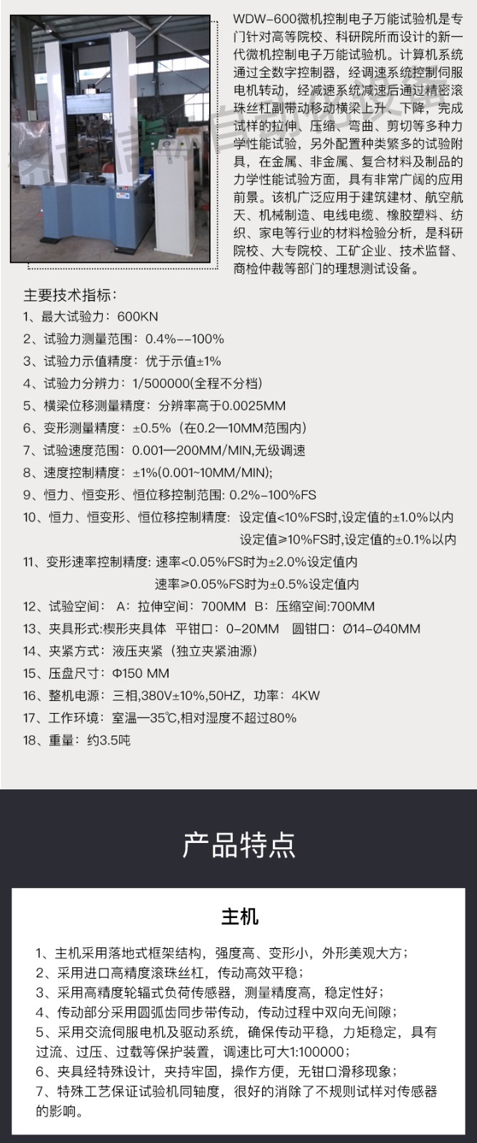 緩沖器彈簧壓力試驗機結構特點