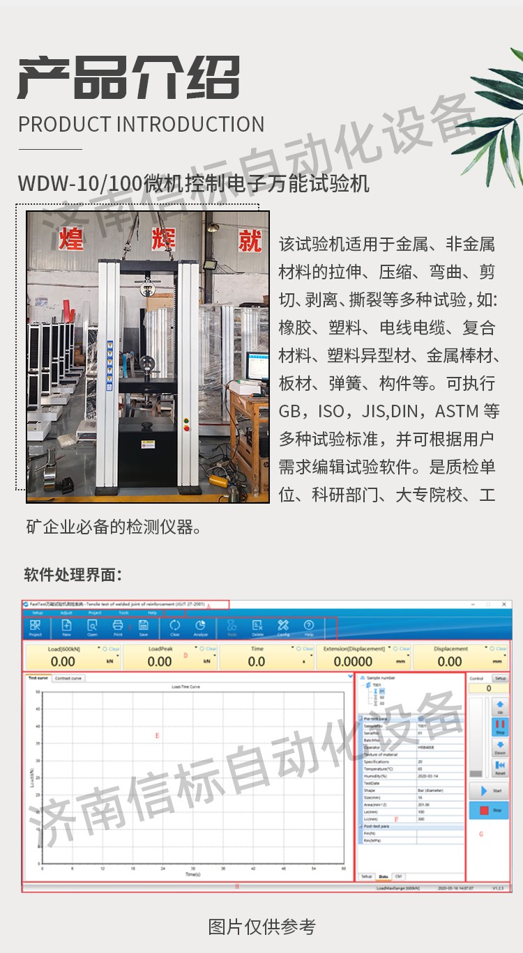 該試驗(yàn)機(jī)適用于金屬、非金屬材料的拉伸、壓縮、彎曲、剪切、剝離、撕裂等多種試驗(yàn),如:橡膠、塑料、電線電纜、復(fù)合材料、塑料異型材、金屬棒材、板材、彈簧、構(gòu)件等。可執(zhí)行GB,ISO,JIS,DIN,ASTM等多種試驗(yàn)標(biāo)準(zhǔn),并可根據(jù)用戶需求編輯試驗(yàn)軟件。是質(zhì)檢單位、科研部門(mén)、大專(zhuān)院校、工礦企業(yè)必備的檢測(cè)儀器。